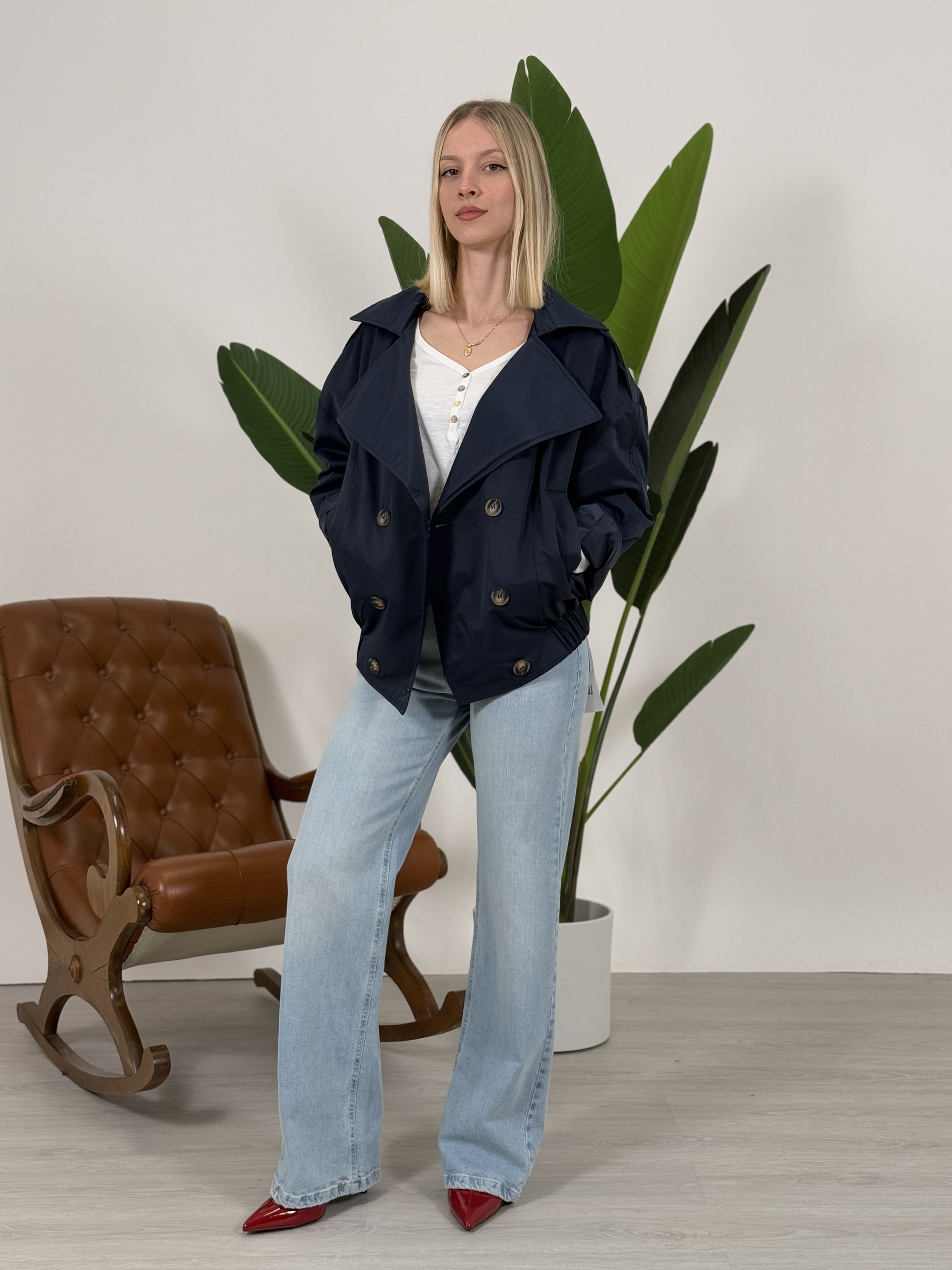Bomber trench doppiopetto con bottoni ed elastico sul fondo