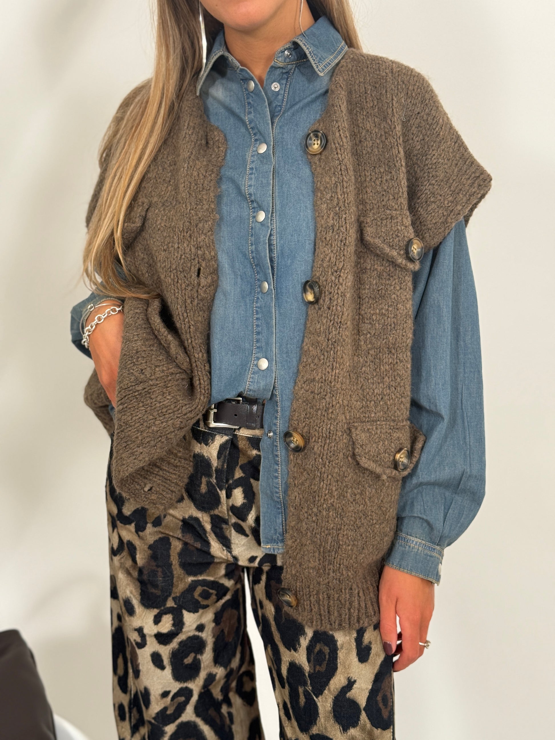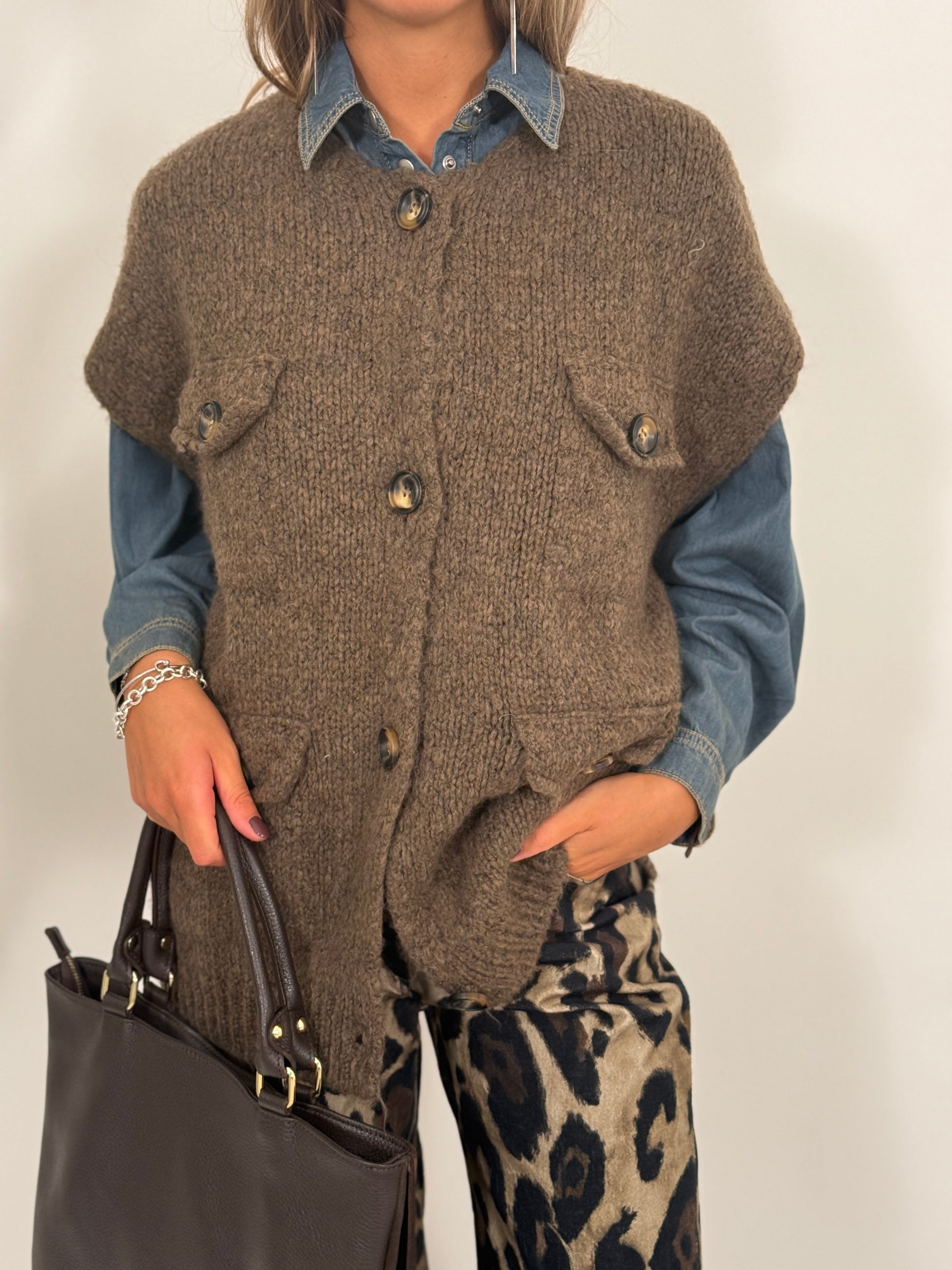 Giacca in maglia smanicata con bottoni