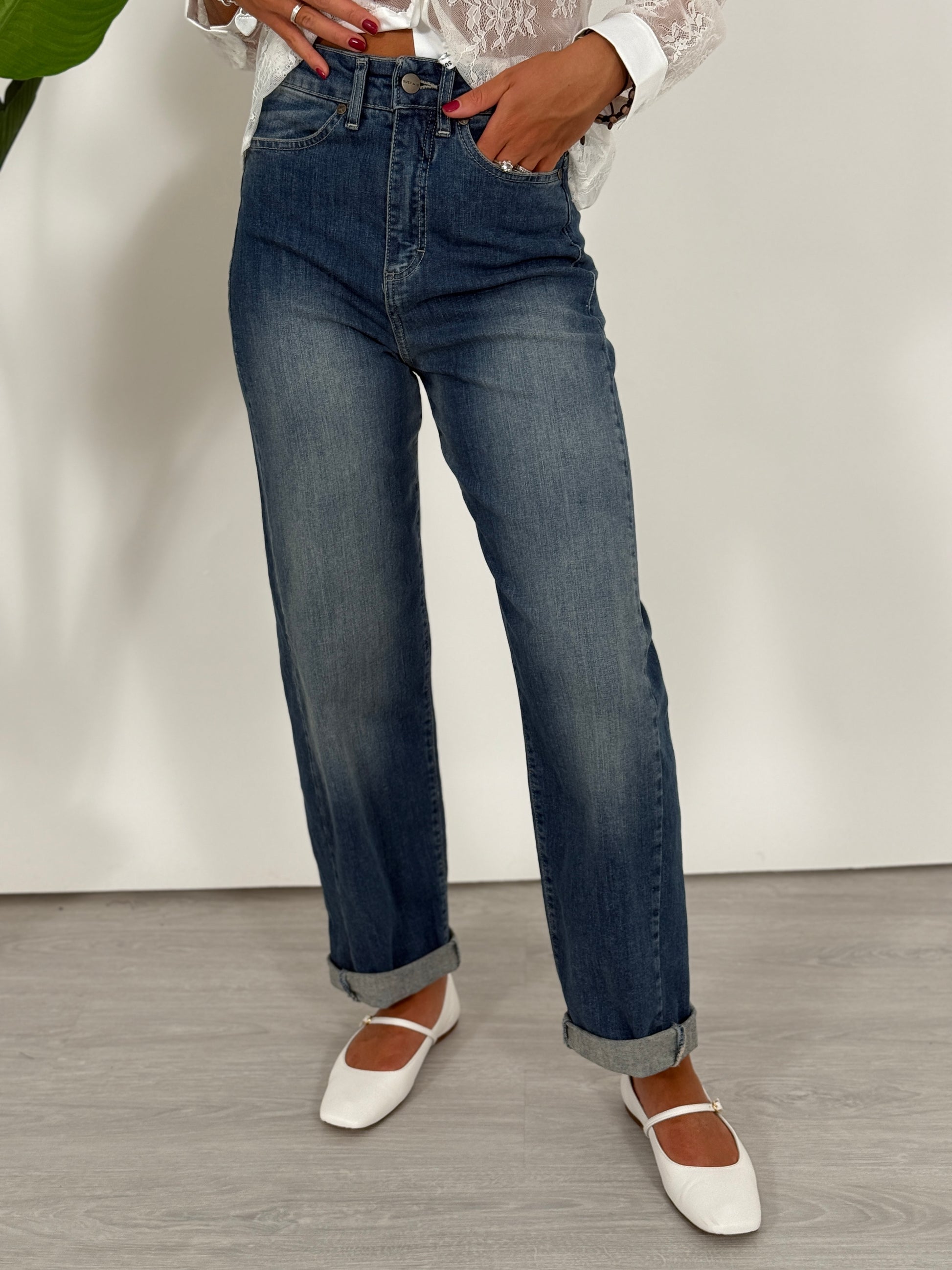 Jeans 5 tasche elasticizzato baloon, lavaggio scuro.