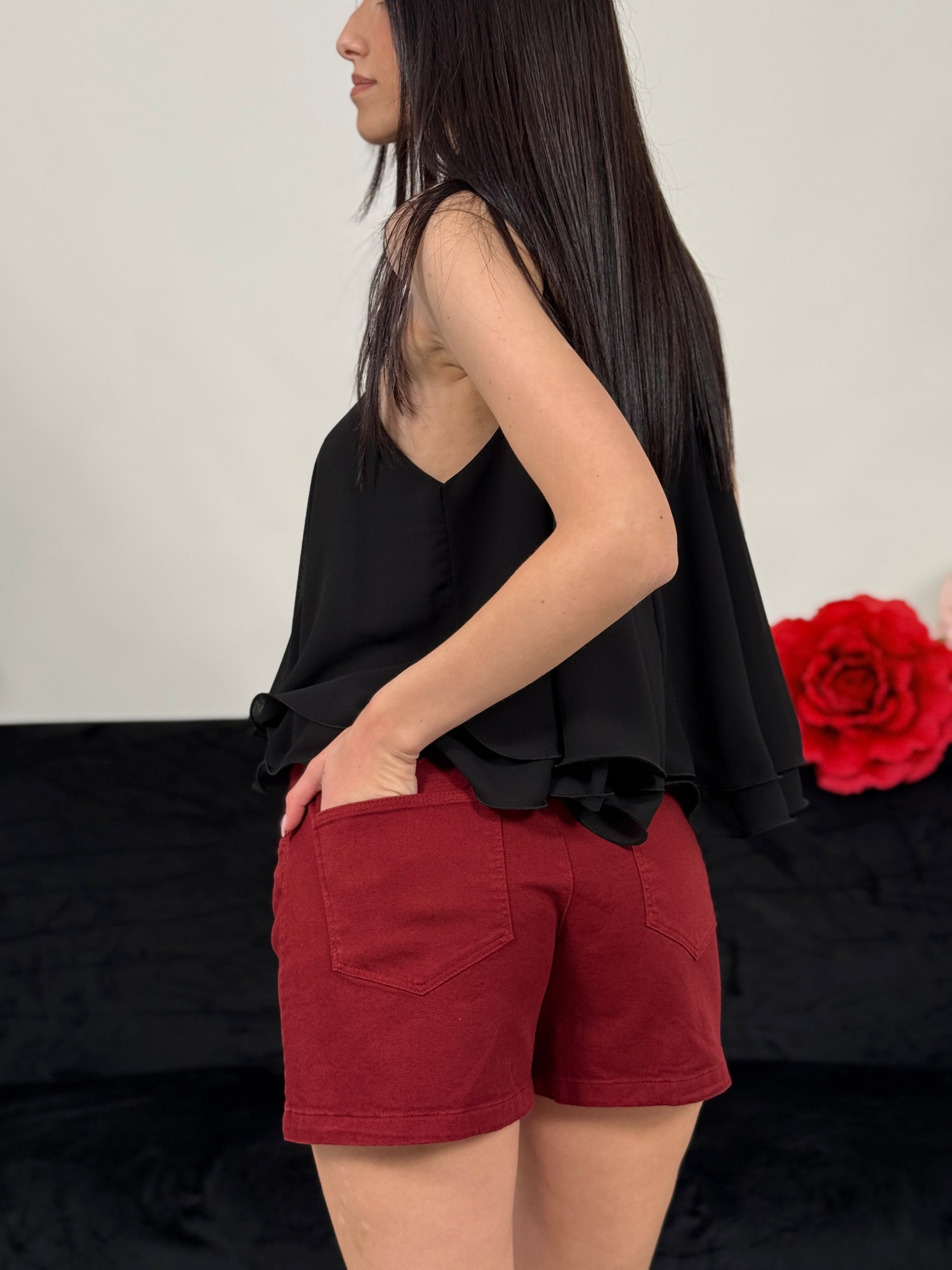Short colorato in cotone, vita media, chiusura con zip e bottone