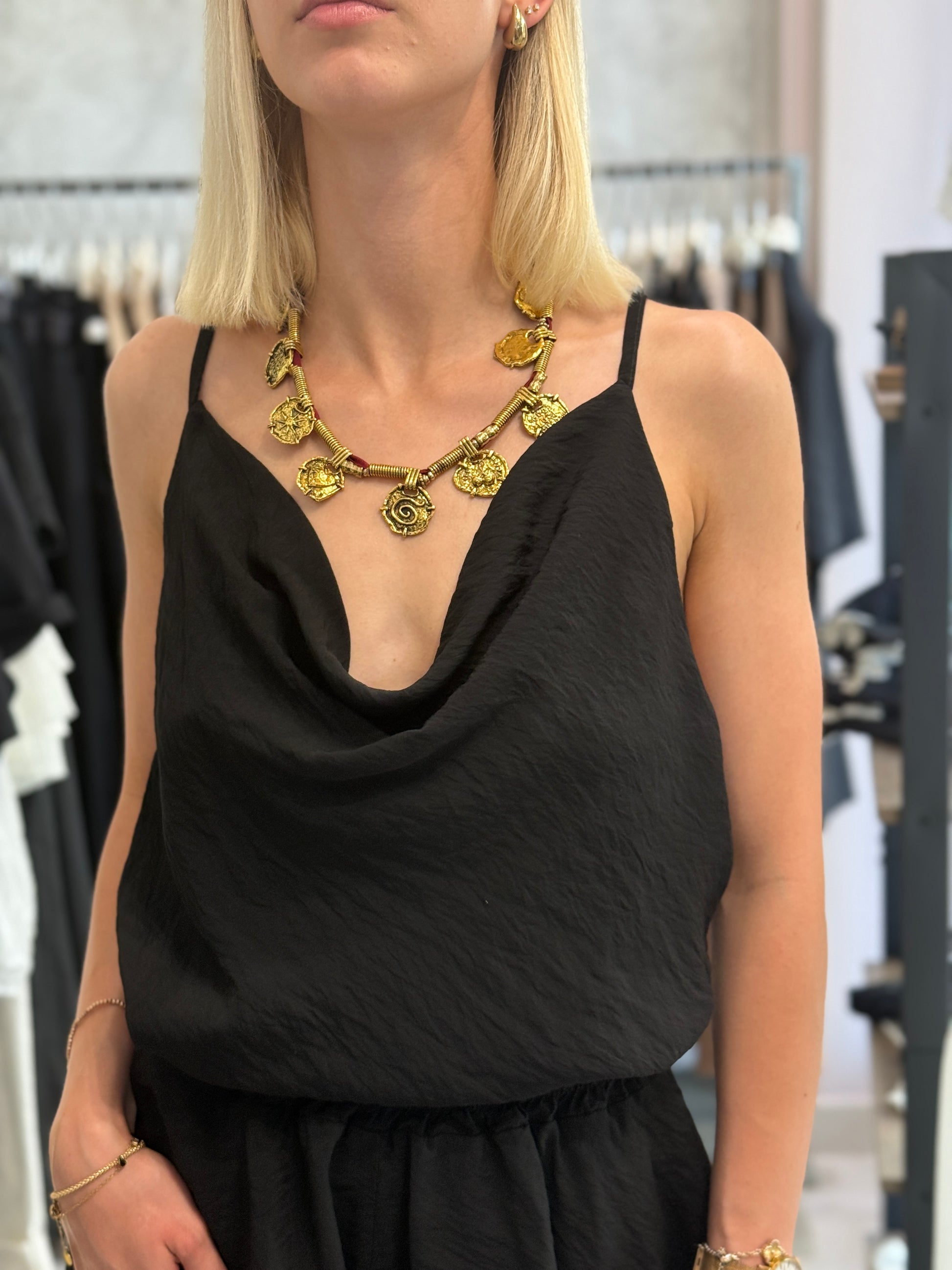 Top spallina sottile con scollo a casata in viscosa effetto stropicciato.